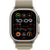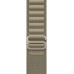 Міцна петля Alpine Loop виготовлена з двох текстильних шарів, сплетених в одне ціле без зшивання. Високоміцні нитки підсилюють верхні петлі, а стійкий до корозії титановий G-гачок легко вставляється в петлі для надійної фіксації. Ця стрічка є вуглецево нейтральною. Ремінець Alpine Loop містить 43% перероблених матеріалів, 100% електроенергії для виробництва покривається екологічно чистою енергією, а 50% або більше всіх вуглецево-нейтральних продуктів Apple Watch доставляються без використання літаків.